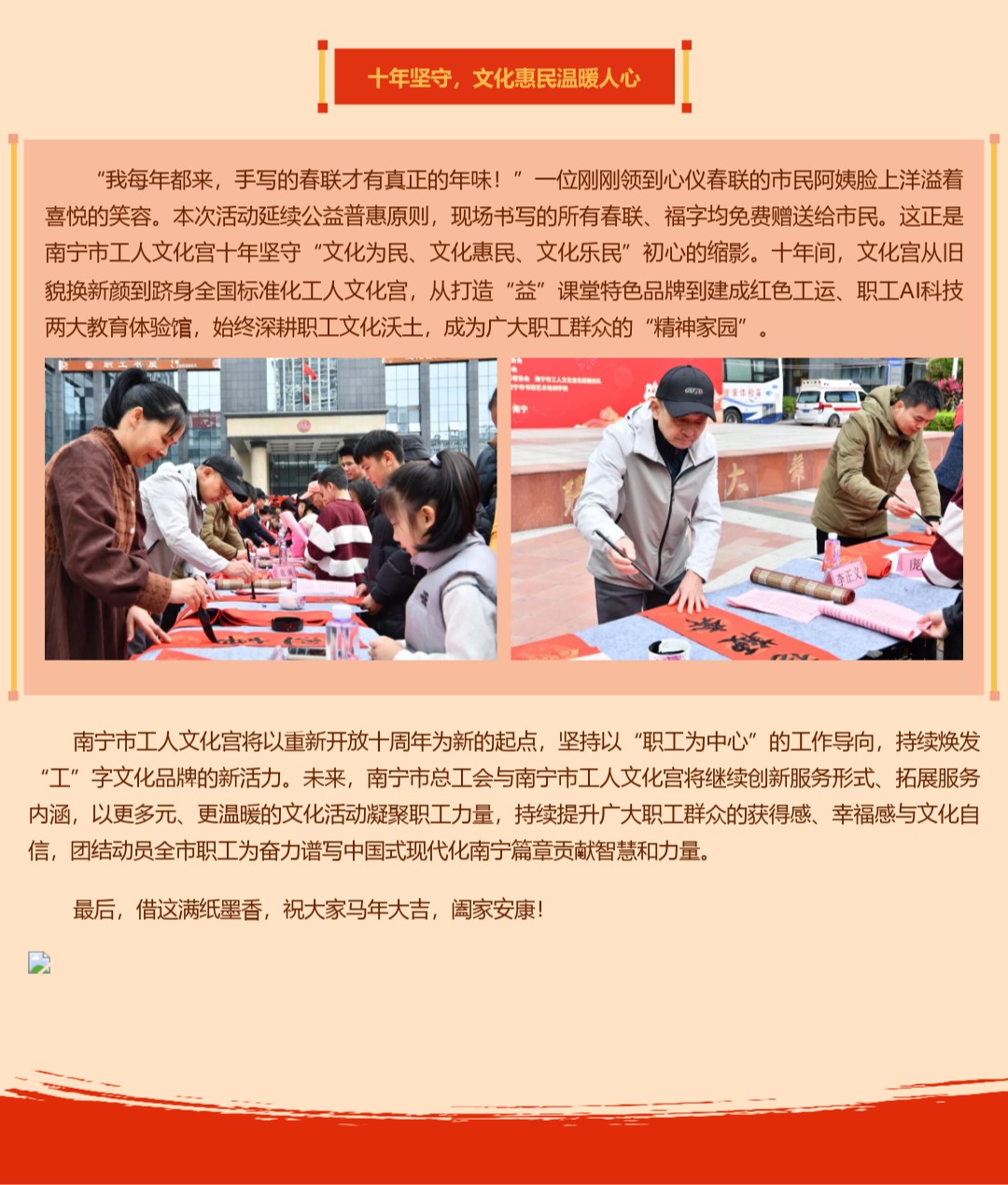 墨香暖邕城!这场写春联活动,恰逢文化宫十年之约