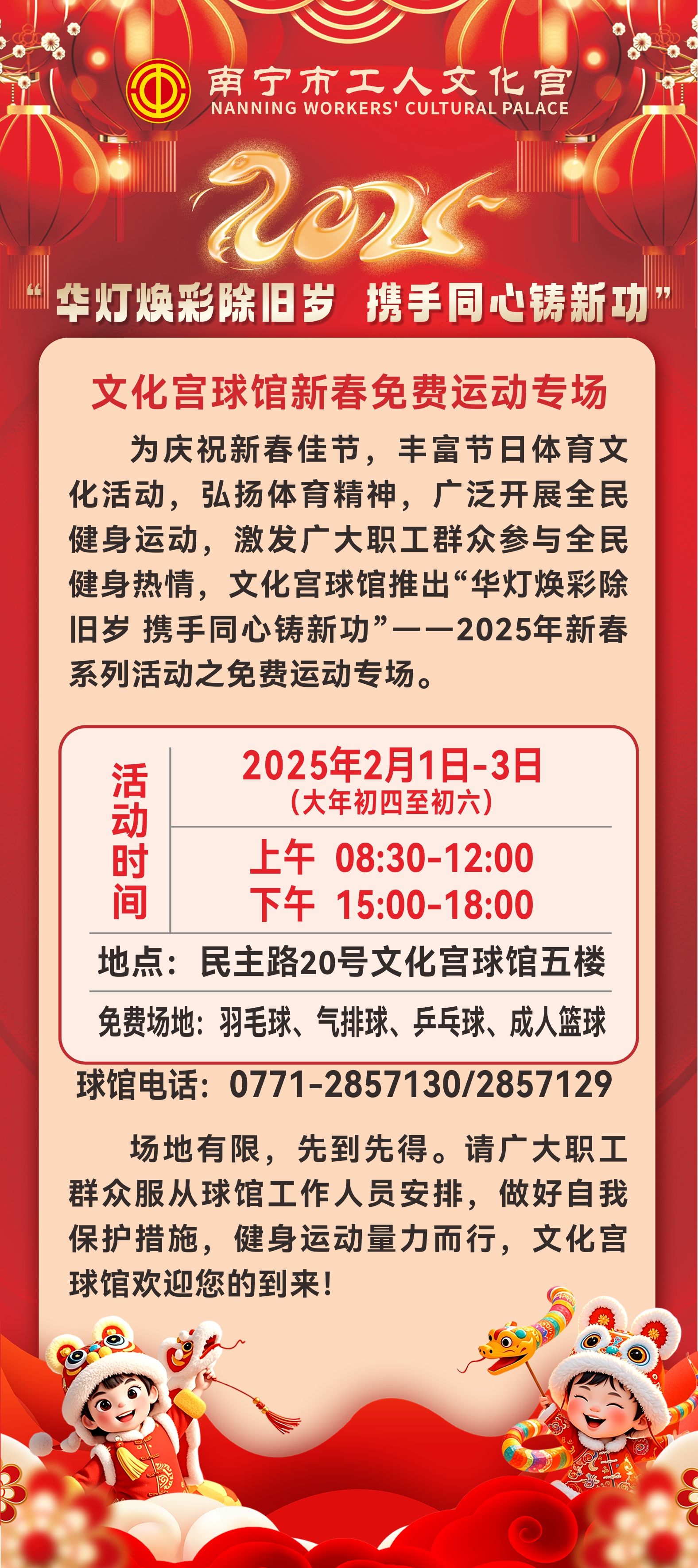 文化宫球馆:0771-2857130,体适能健身馆:0771-2857866